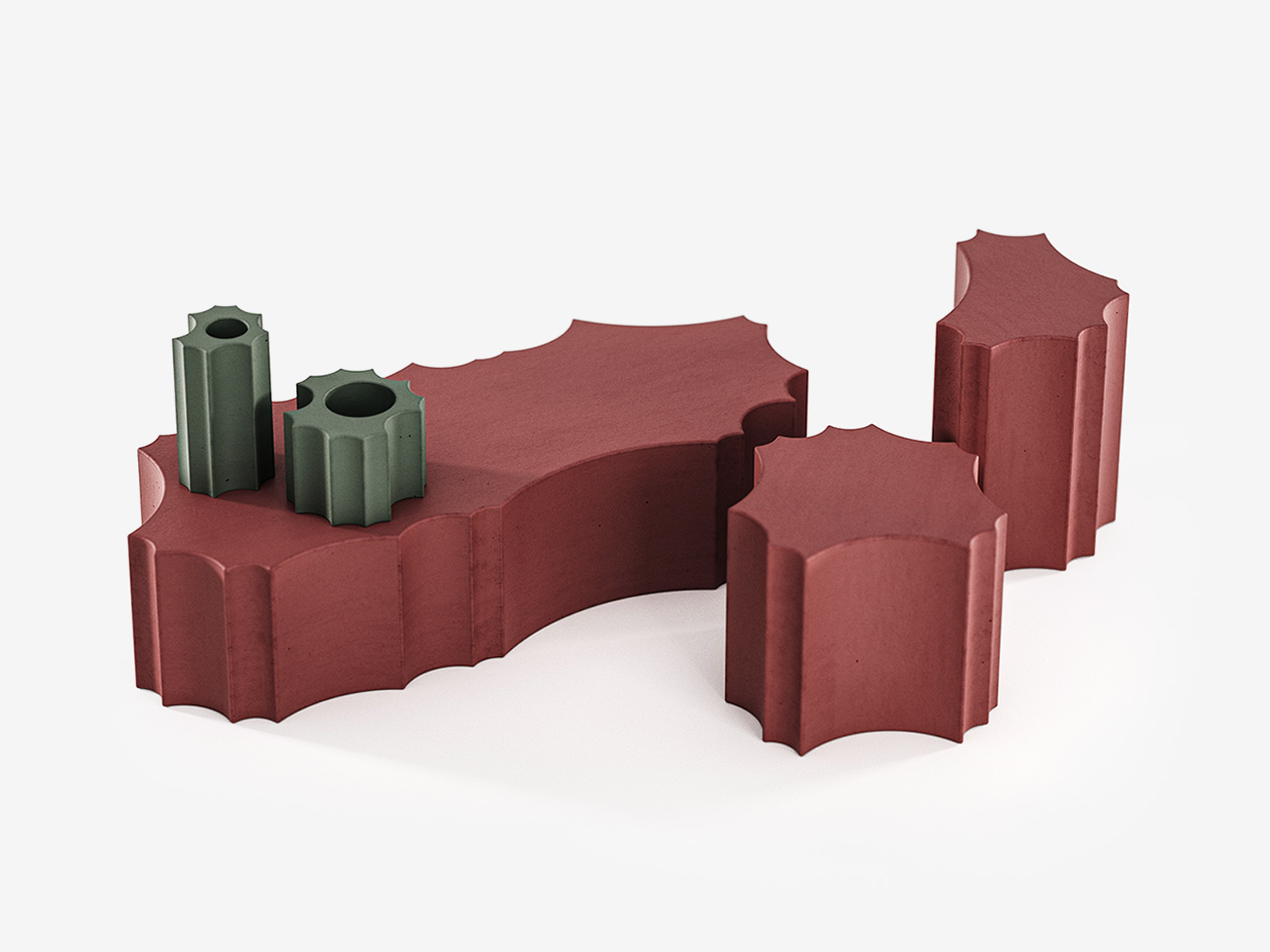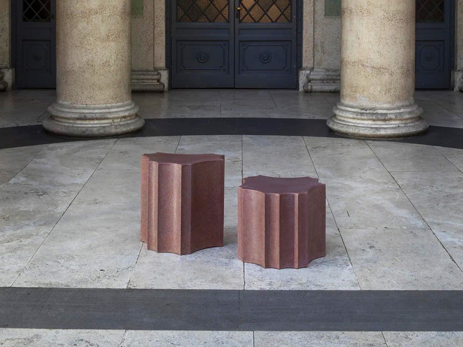 Carefully proportioned, the pieces are designed for versatility: functioning as low tables, stools, or, at smaller scales, containers for plants or objects. With cOre, Bergne transforms industrial scale gestures into refined, functional sculpture.